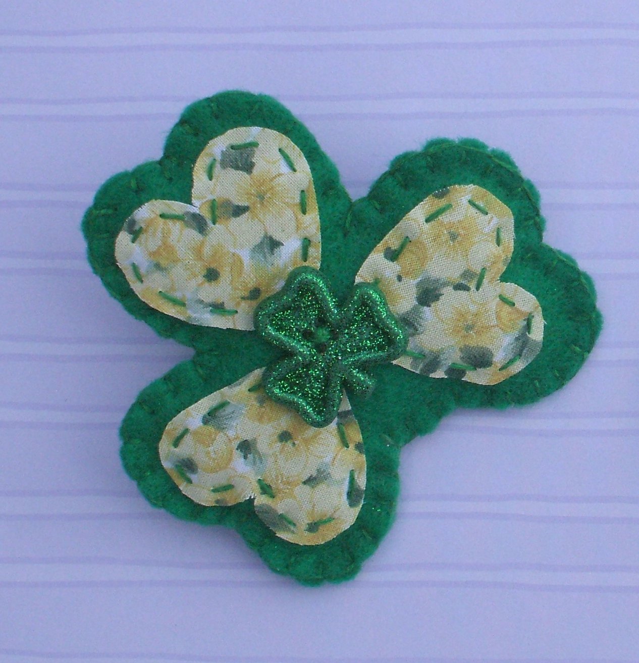 This brooch is a little on the largish size, measuring 3 1/4" x 3", which is okay for me 'cause I'm a little on the largish size too. If that seems too big for you, just reduce the shamrock template down to 75% and the heart template down to 50 %.